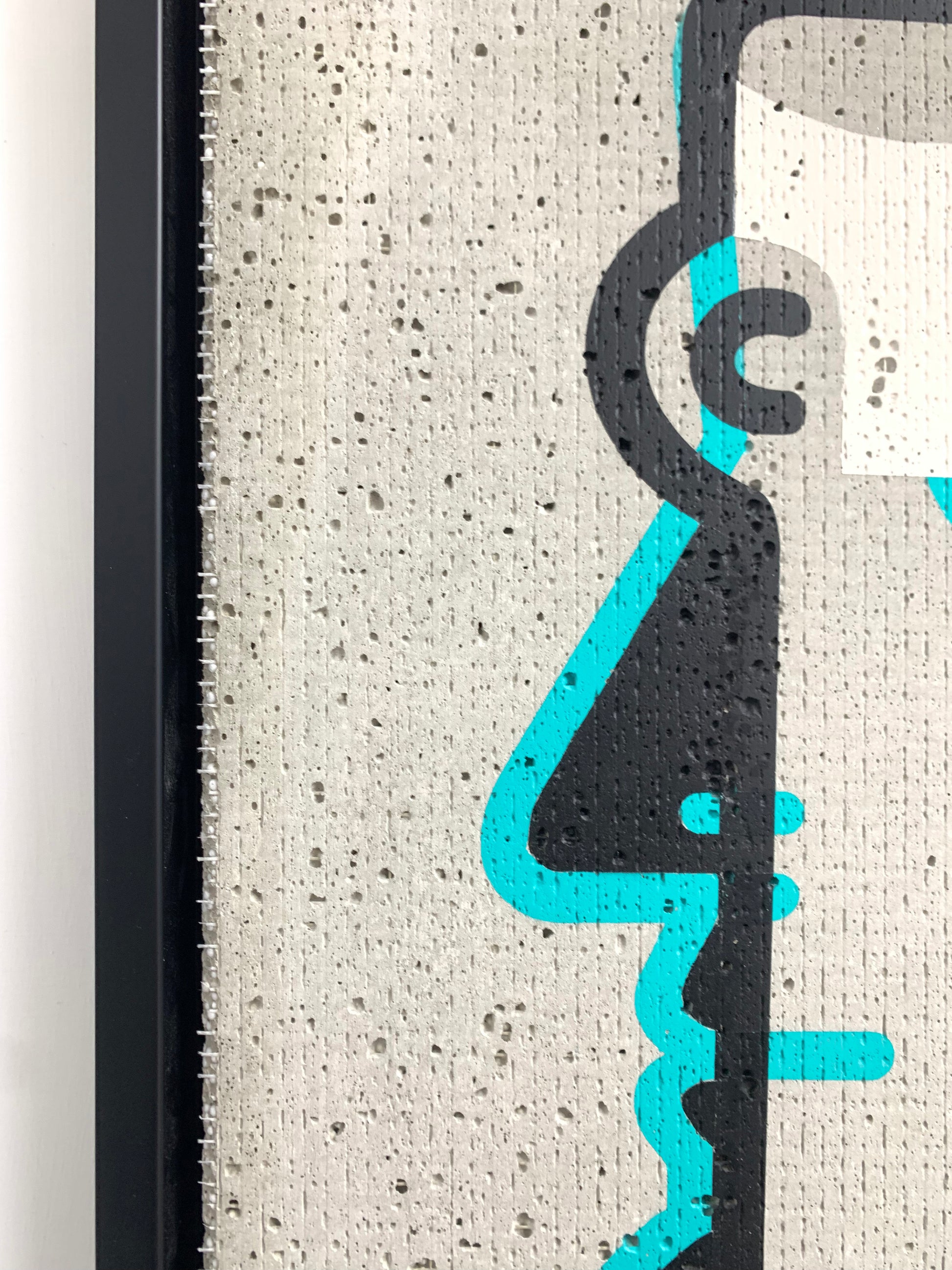 The works are already framed with a suspension system , which creates a floating effect and enhances the materiality of the concrete. Each piece measures 65x65 cm (including the frame), is signed on the back and is accompanied by a certificate of authenticity stamped and signed by the artist.
